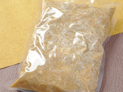 豚モツを湯で炊いて癖を徹底的に取り除きます。ニンニクを隠し味にした濃厚な味噌味のモツ煮です。